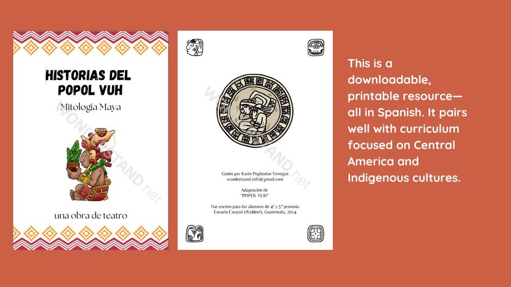 Perfecto para unidades temáticas sobre la civilización maya, mesoamérica o mitología, este recurso puede utilizarse con o sin representación teatral. El teatro en el aula fomenta la interacción, el movimiento y el aprendizaje inmersivo.