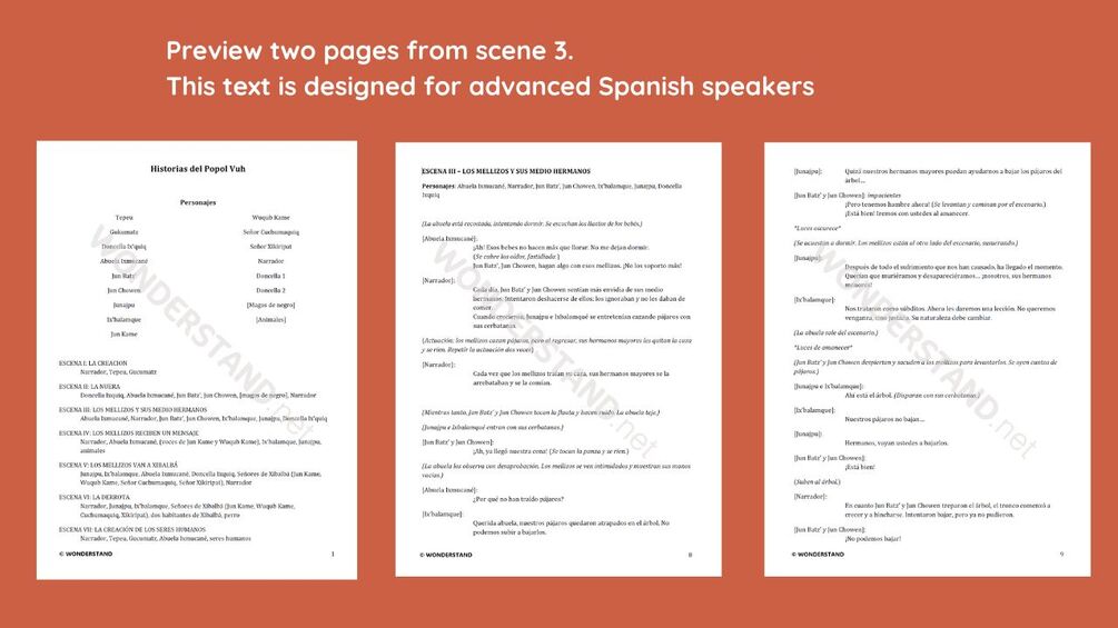 🎭 This 32-page play script in Spanish brings to life key stories from the Popol Vuh, the sacred book of Maya mythology. Designed for advanced Spanish learners or heritage speakers, it enhances reading comprehension, vocabulary, and cultural literacy while immersing students in indigenous Mesoamerican traditions. This script can be used with or without performance, perfect for a unit on Maya civilization, Mesoamerica, or mythology. Theatre-based learning helps students engage through expression, movement, and collaboration, making language acquisition memorable and meaningful.